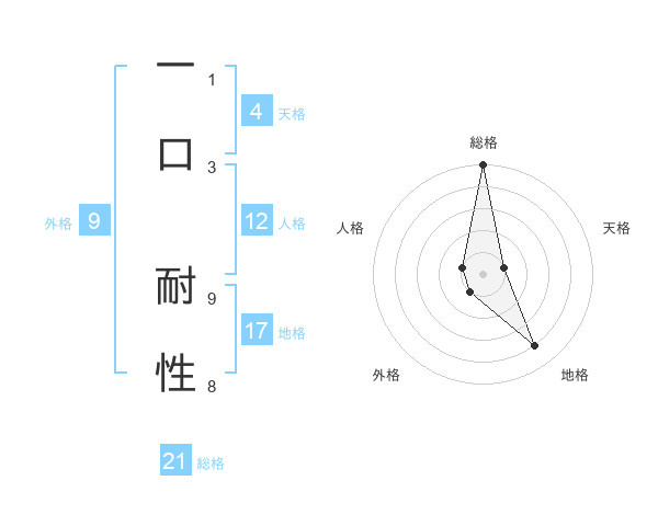 一口 耐性さんの地格は17画の4点!