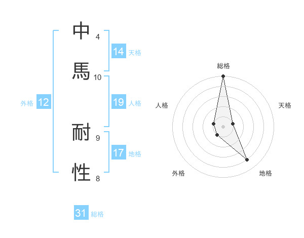 中馬 耐性さんを姓名の画数から五運を鑑定
