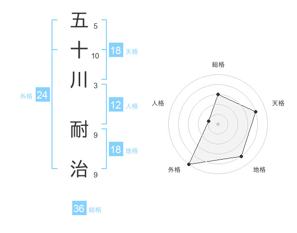五十川 耐治さんを姓名の画数から五運を鑑定