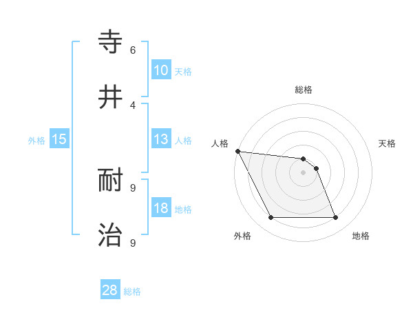 寺井 耐治さんの総格は28画の1点!