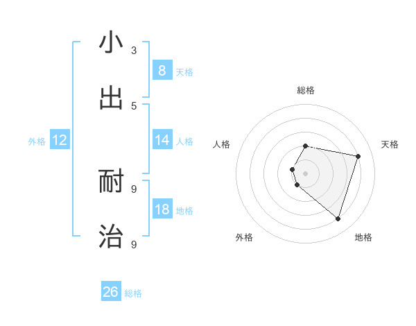 小出 耐治さんの総格は26画の2点!