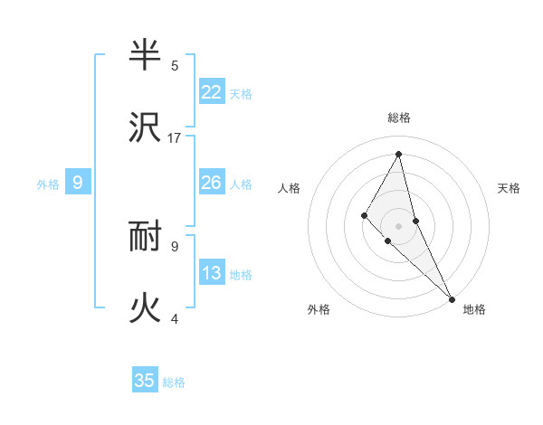 半沢 耐火さんを姓名の画数から五運を鑑定