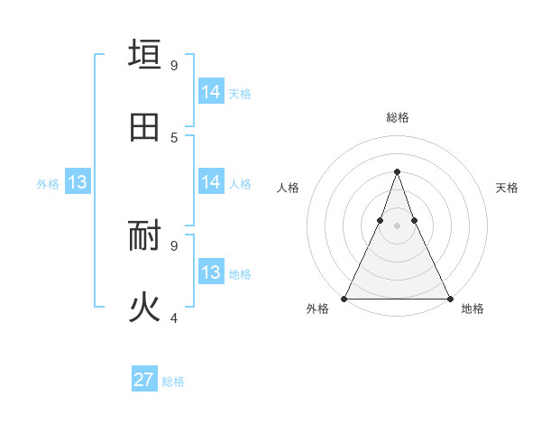垣田 耐火さんの外格は13画の5点!