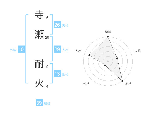 寺瀬 耐火さんを姓名の画数から五運を鑑定
