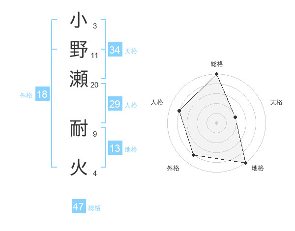 小野瀬 耐火さんを姓名の画数から五運を鑑定