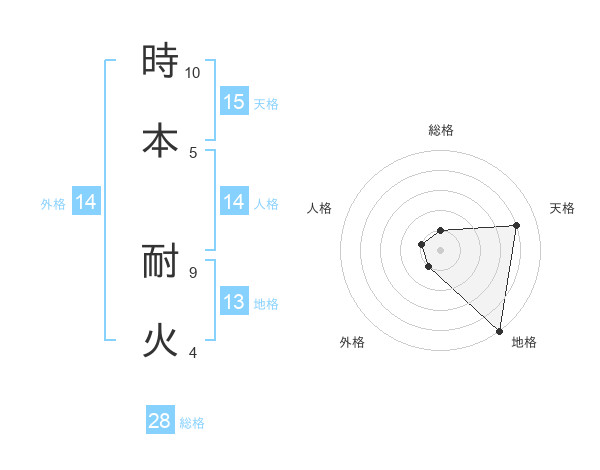 時本 耐火さんの総格は28画の1点!