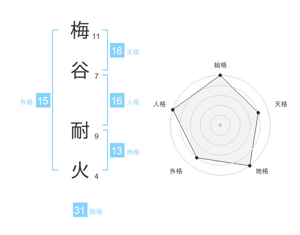 梅谷 耐火さんの総格は31画の5点!