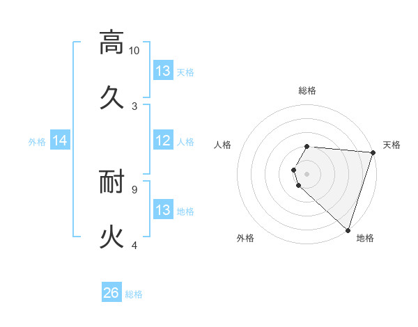 高久 耐火さんの総格は26画の2点!