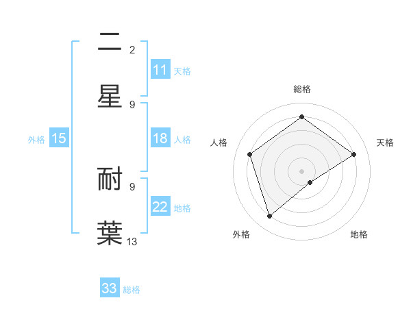 二星 耐葉さんを姓名の画数から五運を鑑定