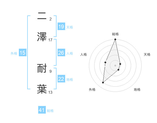 二澤 耐葉さんを姓名の画数から五運を鑑定