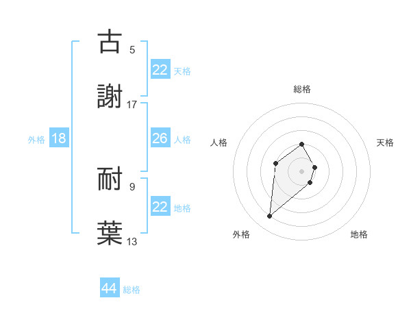 古謝 耐葉さんの天格は22画の1点!