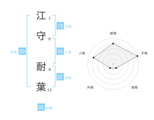 江守 耐葉さんの天格は13画の5点!