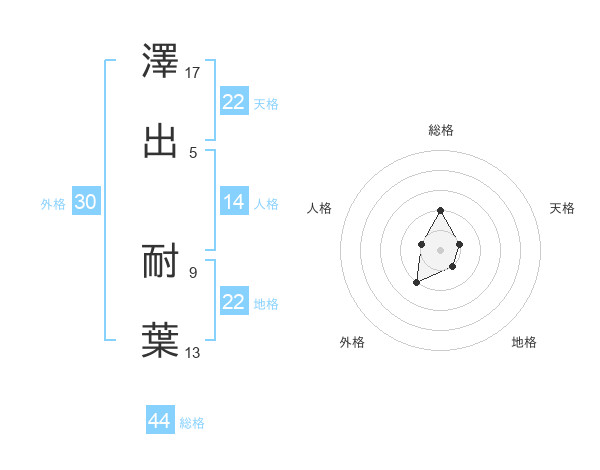 澤出 耐葉さんを姓名の画数から五運を鑑定