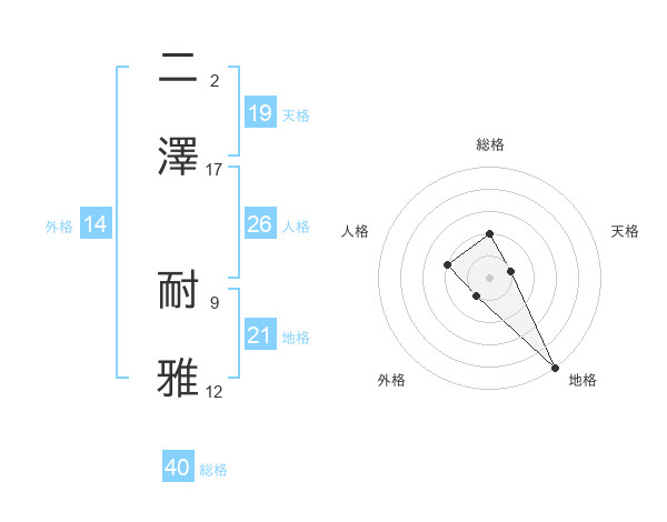 二澤 耐雅さんの天格は19画の1点!