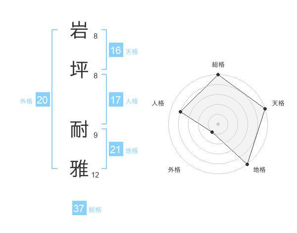 岩坪 耐雅さんの総格は37画の5点!