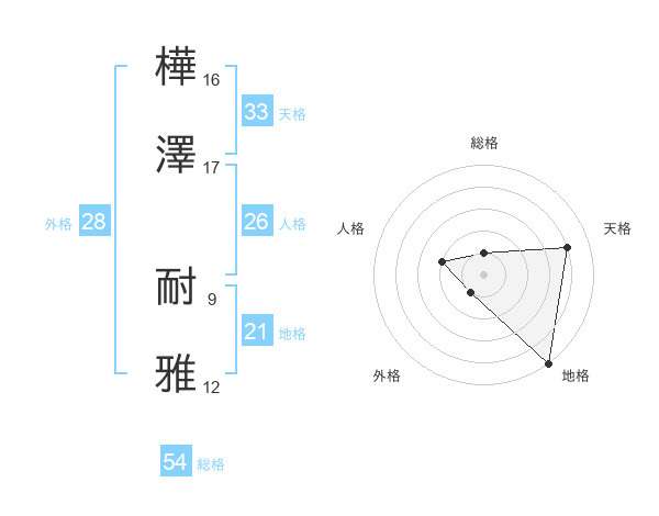 樺澤 耐雅さんの天格は33画の4点!