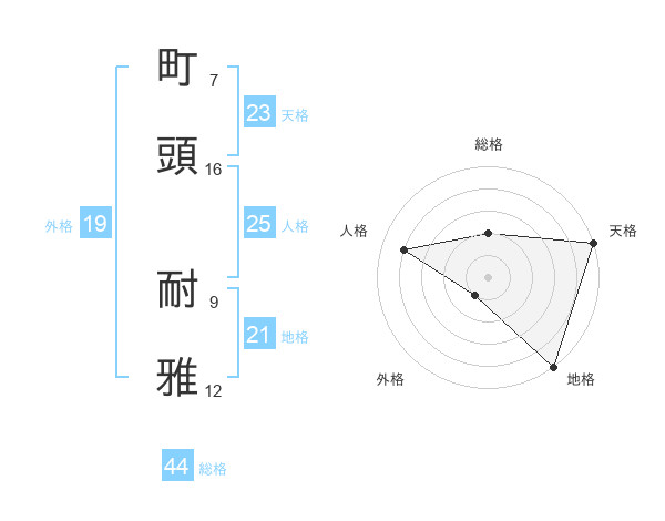 町頭 耐雅さんを姓名の画数から五運を鑑定