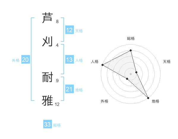 芦刈 耐雅さんを姓名の画数から五運を鑑定