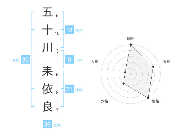 五十川 耒依良さんを姓名の画数から五運を鑑定