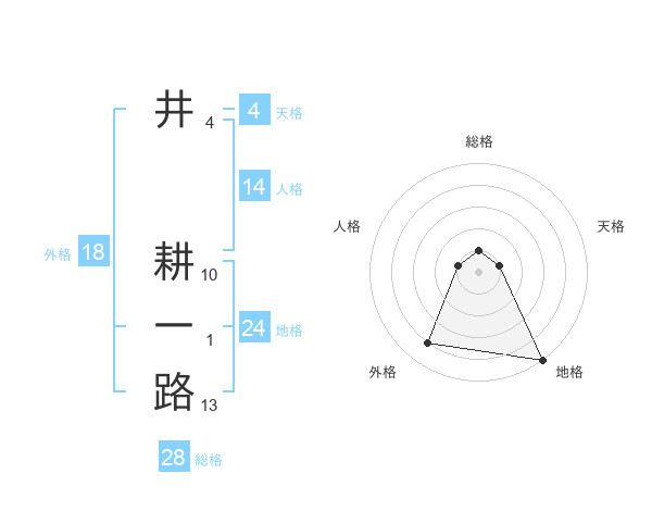 井 耕一路さんの総格は28画の1点!