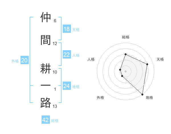 仲間 耕一路さんの総格は42画の3点!