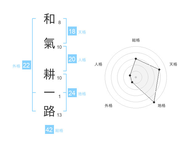 和氣 耕一路さんを姓名の画数から五運を鑑定