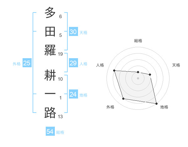 多田羅 耕一路さんを姓名の画数から五運を鑑定