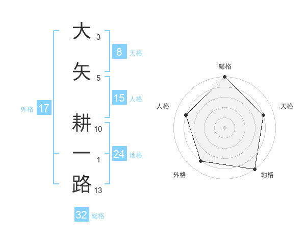 大矢 耕一路さんを姓名の画数から五運を鑑定