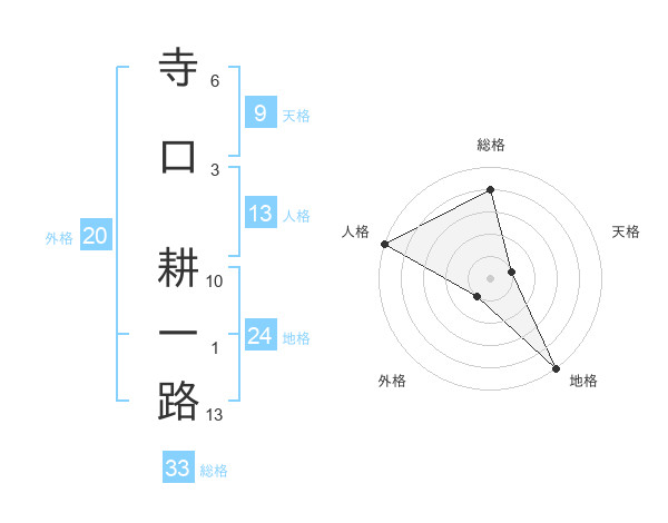 寺口 耕一路さんの総格は33画の4点!
