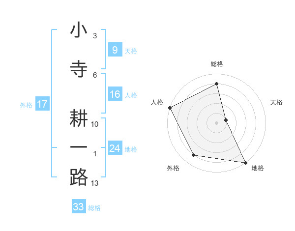 小寺 耕一路さんを姓名の画数から五運を鑑定