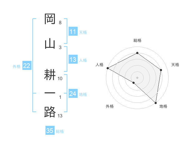 岡山 耕一路さんを姓名の画数から五運を鑑定