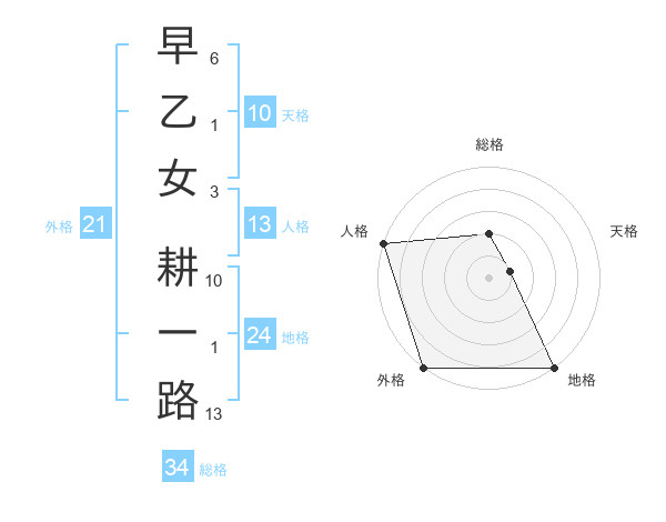 早乙女 耕一路さんを姓名の画数から五運を鑑定