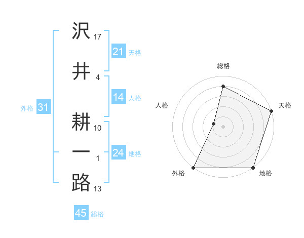 沢井 耕一路さんの天格は21画の5点!