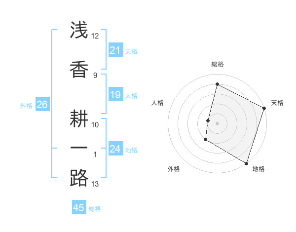 浅香 耕一路さんの総格は45画の4点!