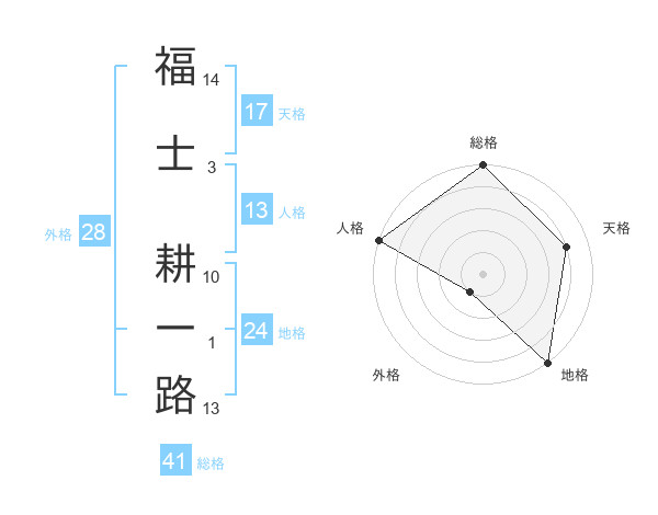 福士 耕一路さんを姓名の画数から五運を鑑定