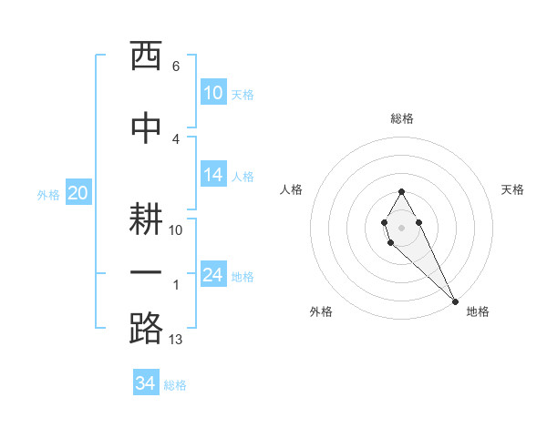 西中 耕一路さんを姓名の画数から五運を鑑定