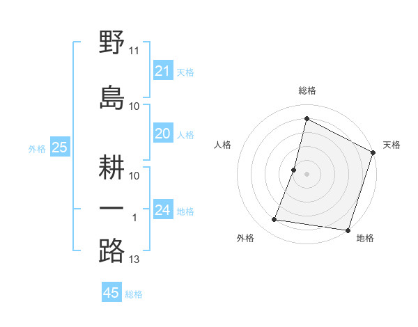野島 耕一路さんを姓名の画数から五運を鑑定
