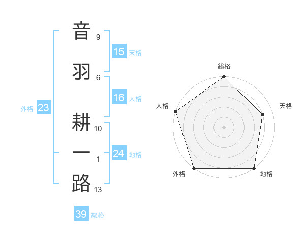 音羽 耕一路さんの総格は39画の5点!