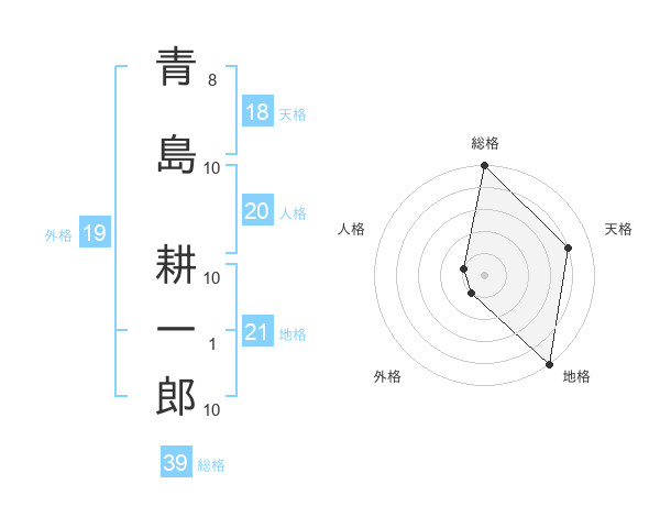 青島 耕一郎さんを姓名の画数から五運を鑑定