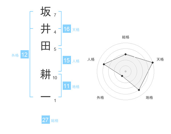 坂井田 耕一さんを姓名の画数から五運を鑑定