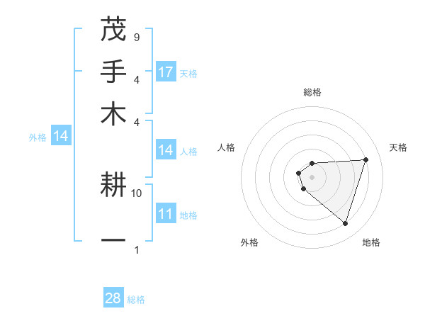 茂手木 耕一さんの天格は17画の4点!
