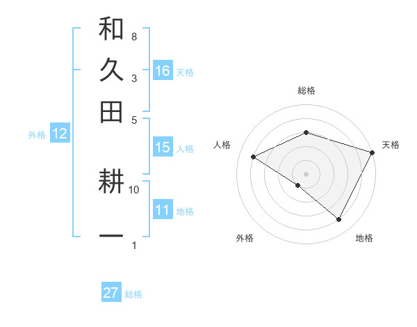 和久田 耕一さんの総格は27画の3点
