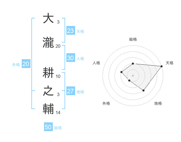 大瀧 耕之輔さんを姓名の画数から五運を鑑定
