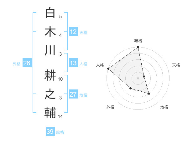 白木川 耕之輔さんの総格は39画の5点!