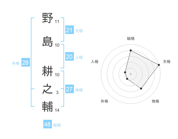 野島 耕之輔さんを姓名の画数から五運を鑑定