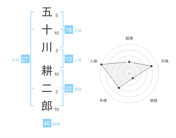 五十川 耕二郎さんを姓名の画数から五運を鑑定