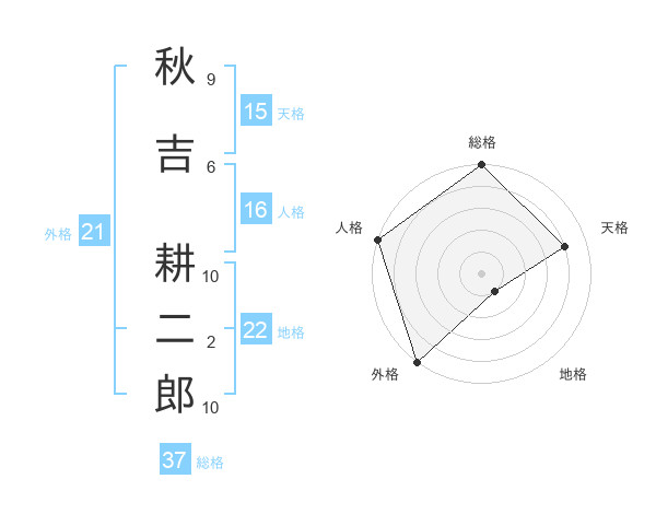 秋吉 耕二郎さんの総格は37画の5点!