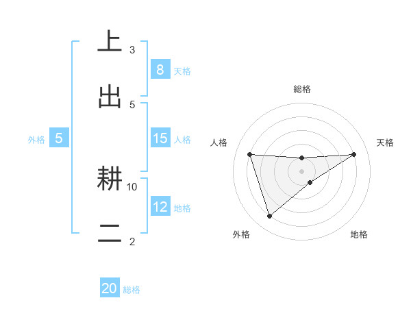 上出 耕二さんを姓名の画数から五運を鑑定