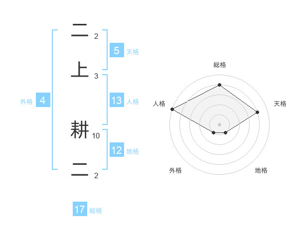 二上 耕二さんの総格は17画の4点!