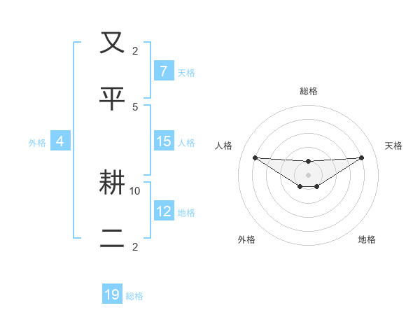 家系が持つ宿命的な運勢を表します。祖先から受け継いだ苗字ですので自分の力が及びません。家柄を象徴します。
